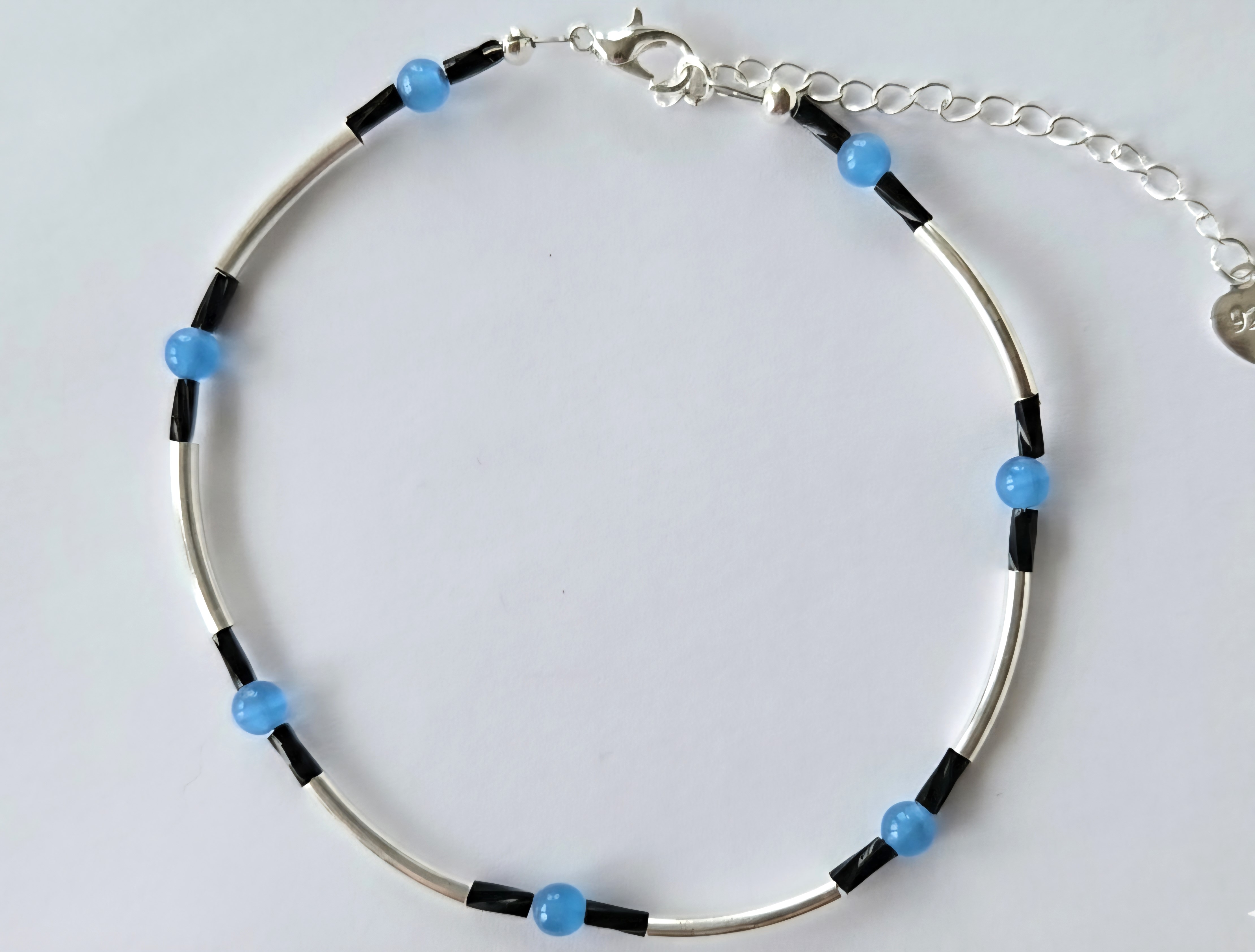 ,,Błękitna Poświata" to więcej niż biżuteria - to małe dzieło sztuki, które otuli Twój nadgarstek subtelnym blaskiem i elegancją. Idealna na kążdą okazję, doda uroku zarówno codziennym stylizacjom, jak i wieczorowym kreacjom, roztaczając wokół Ciebie aurę spokoju i wyrafinowania.