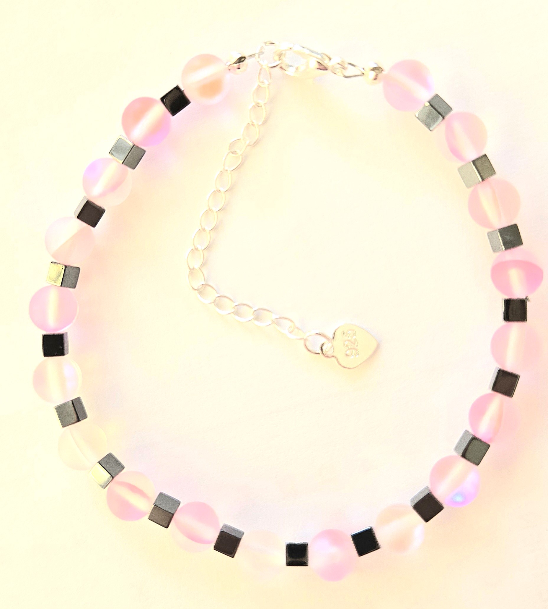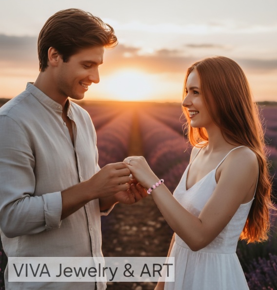 Twoje serce bije szybciej, gdy bierzesz do ręki te chłodne kamienie. Różowy spektrolit, połyskujący w ostatnich promieniach słońca, przypomina o Twym uśmiechu. Każdy maleńki odcień różu i fioletu to echa ciepła, jakie on wnosi do Twego życia - jesteś dla niego jak osobisty promyk słońca, który rozjaśnia każdy dzień. Natomiast czarny hemetyt symbolizuje stabilnośc i siłę Waszego uczucia. To kamień, który chroni, daje oparcie i przypomina, że nawet w ciemnościach Wasze uczucie pozostanie niezmienne i pewne.