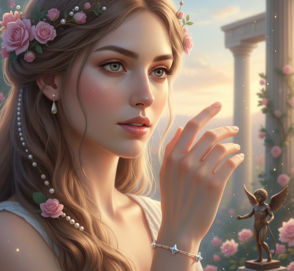 Delikatne, misternie wykonane gwiazdki, lśniące w blasku porannego słońca, symbolizują swobodę i lekkość, jaką daje miłość. Każdy element bransoletki odzwierciedla duszę, która w miłości odnajduje swój najwyższy lot, przekraczjąc granicę ludkich ograniczeń. Niewidzialne nici drucika jubilerskiego, splatające skrzydła z centralnym punktem, symbolizują nierozerwalną więź, jaką tworzy prawdziwe uczucie. Połączenie Erosa i Psyche to symbol miłości wnoszącej duszę, skrzydła Erosa reprezentują miłość, a dusza Psyche uosabia ludzkiegiego ducha. To połaczenie staje się w ten sposób nierozerwalne.