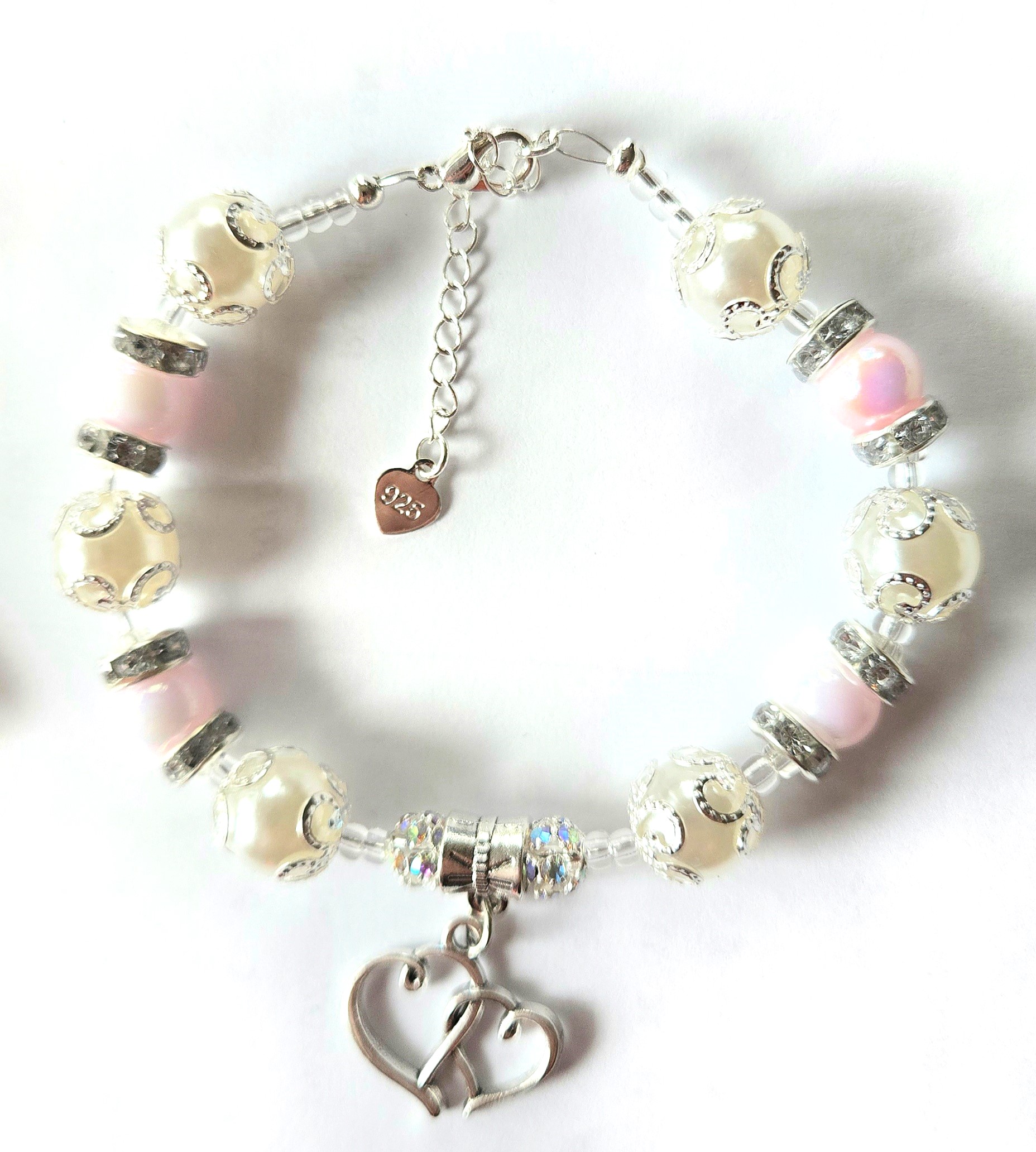 Całość uzupełniają wysokiej jakości opaliujące koraliki akrylowe w odcieniu mroźnego różu oraz iskrzące przekładki z cyrkoniami, które łapią nawet najmniejsze pasmo światła. Biżuterię wieńczy romantyczna zawieszka w kształcie dwóch serc, symbolizująca bliskość i uczucia, tak ważne w czasie świąt Bożego Narodzenia.