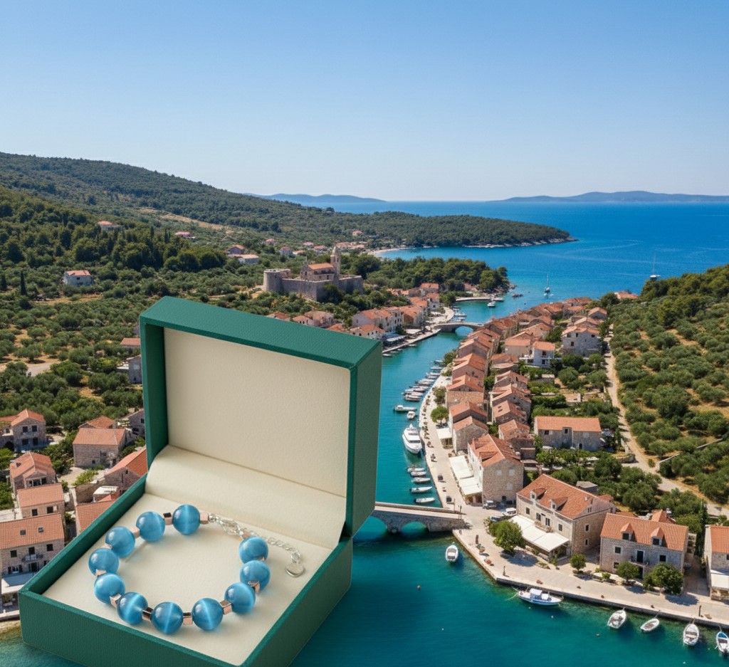 Bransoletka ,,Urocza Vborska" powstała po wpływem inspiracji ze wspomnień dawnej wyciczki rowerowej po malowniczej miejscowości Vborska na wyspie Hvar.