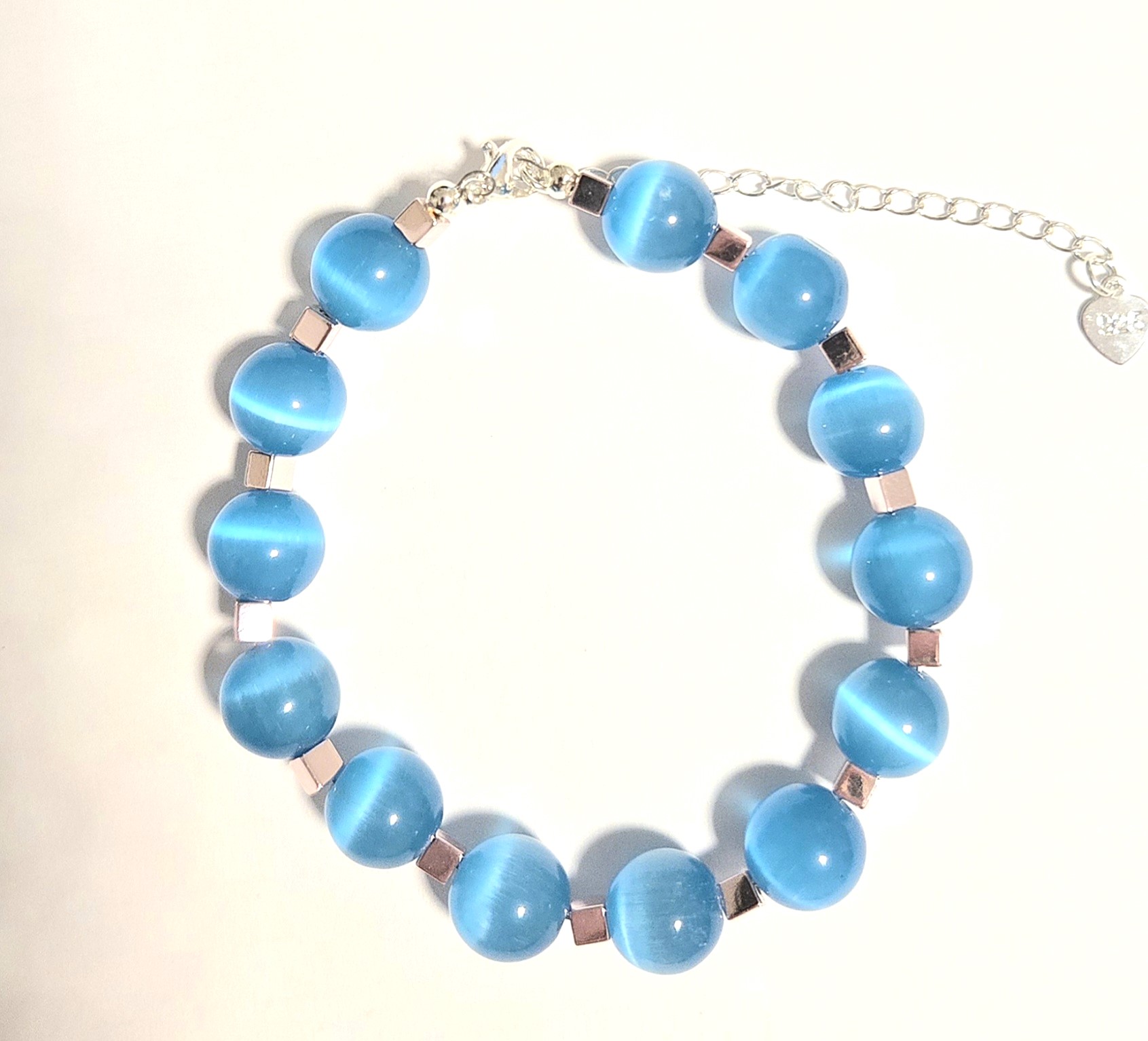 Koraliki chalcedonu w kolorze morskim przemawiają do nas przynosząc na myśl obraz mostków niczym porzeniesionych z Wenecji. Podmuch wiatru rozwiewewał włosy, przynosząc ze sobą wszechobecny na wyspie zapach lawendy. Szum wiatru w kołach roweru przemawiał kształtem okrągłych koralików chalcedonu w morskim odcieniu. Zapach letniej, opalonej skóry mieszał się z zapachem letnich perfum, a różowy kolor kwadracików hematytu odzwierciedlają teraz barwy zachodzącego słońca, gdy zegar na wieży pobliskiego kościółka wybijał godzinę 21 - szą, obwieszczając turystom koniec letniego dnia.