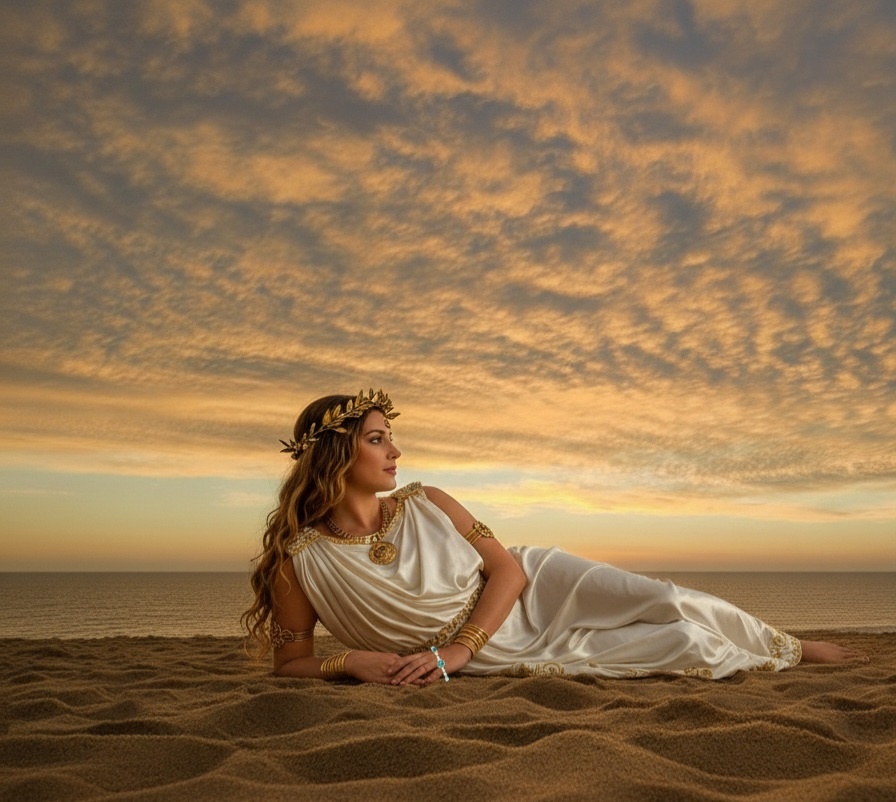 Nosząc ,,Więzy Kalipso," nosisz ze sobą cząstkę jej pragnienia - praganienia, by zatrzymać ukochanego, by obdarzyć go nieśmiertelnością i wiecznym szczęściem. Agaty w tej bransoletce lśnią niczym jej oczy, gdy z troską i uwielbieniem spoglądała na herosa, wędrującego przez jej zaczarowane ogrody. Ich barwa przywodzi na myśl spokojne zatoki wyspy, gdzie Odyseusz znajdował ukojenie po morskich sztormach, a jednocześnie symbolizuje głębię jej uczuć - niezmierzoną i intensywną.