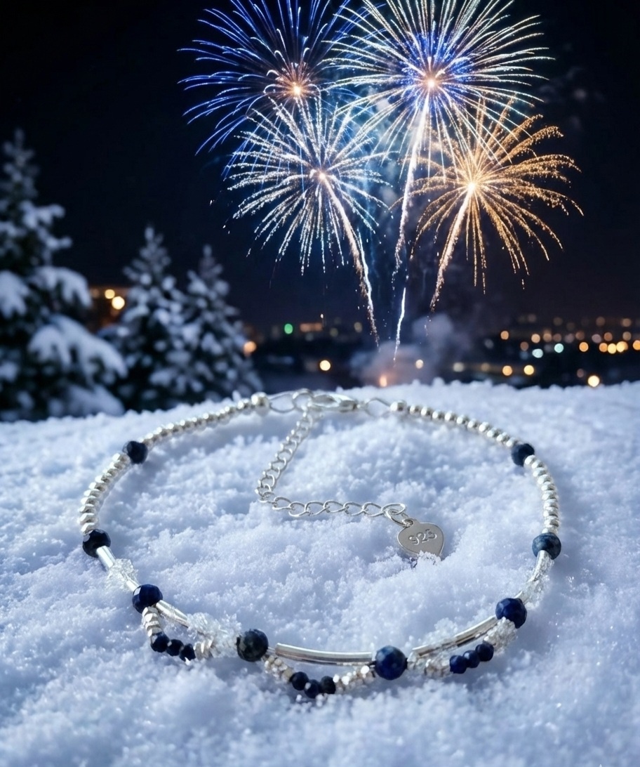 Ta wyjątkowa bransoletka, ,,Zimowy Błękit" to harmonijne połączenie głębokiego granatu naturalnego lapis lazuli z metalicznym blaskiem srebrnego hematytu. Centralnym punktem tej kompozycji są srebrne, półkoliste przekładki, które tworzą efekt delikatnej fali, idealnie dopasowując się do nadgarstka.