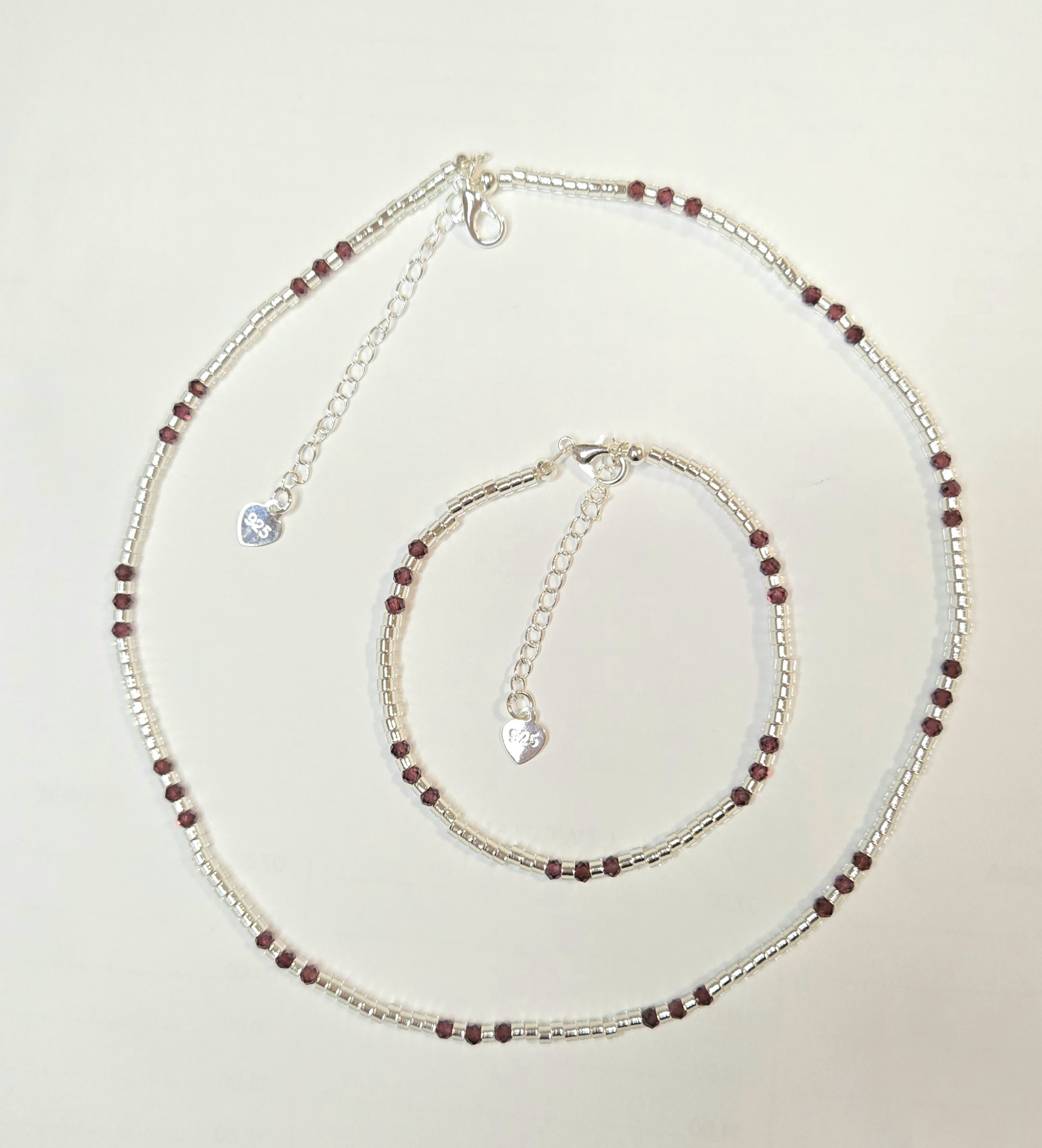 KOMPLET BIŻUTERII ,,ZIARNA GRANATU" Z GRANATÓW ZE SZKLANYMI PRZEKŁADKAMI