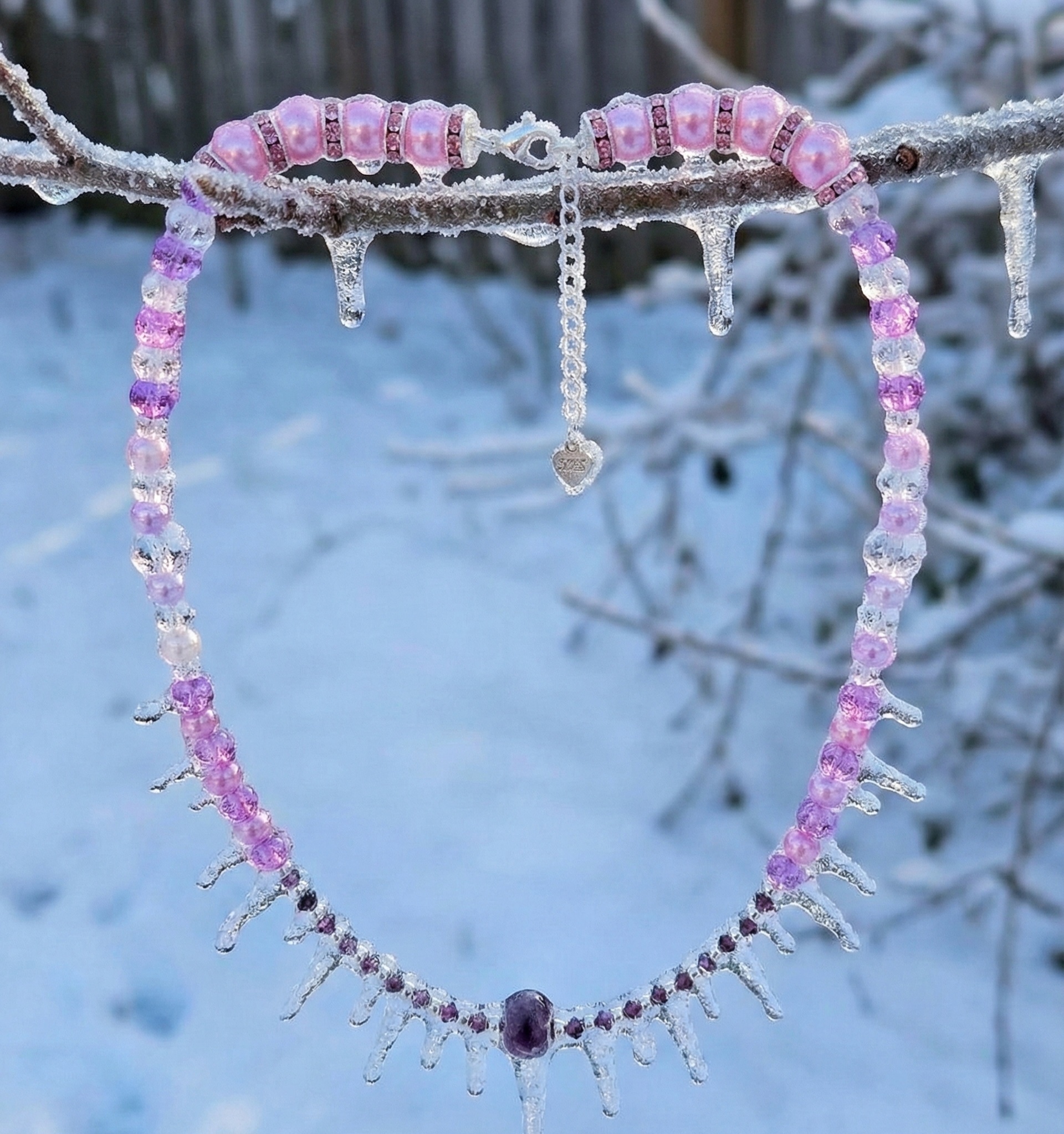 Naszyjnik ,,Fioletowa Aurora" jest idealny na Karnawał i Sylwestra również na Walentynki.