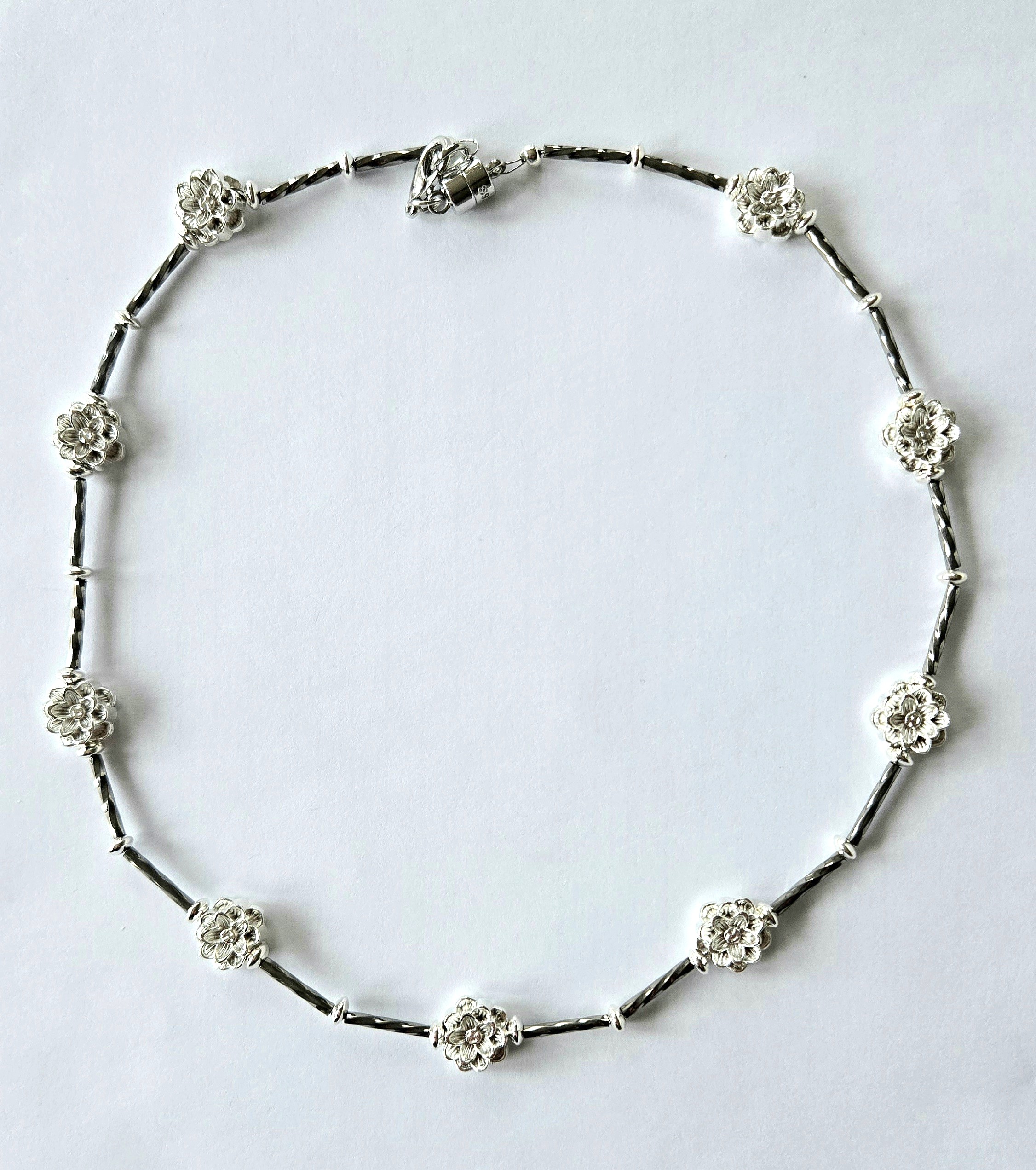 NASZYJNIK ,,KWIATY NOCY" Z HEMATYTÓW I SREBRA