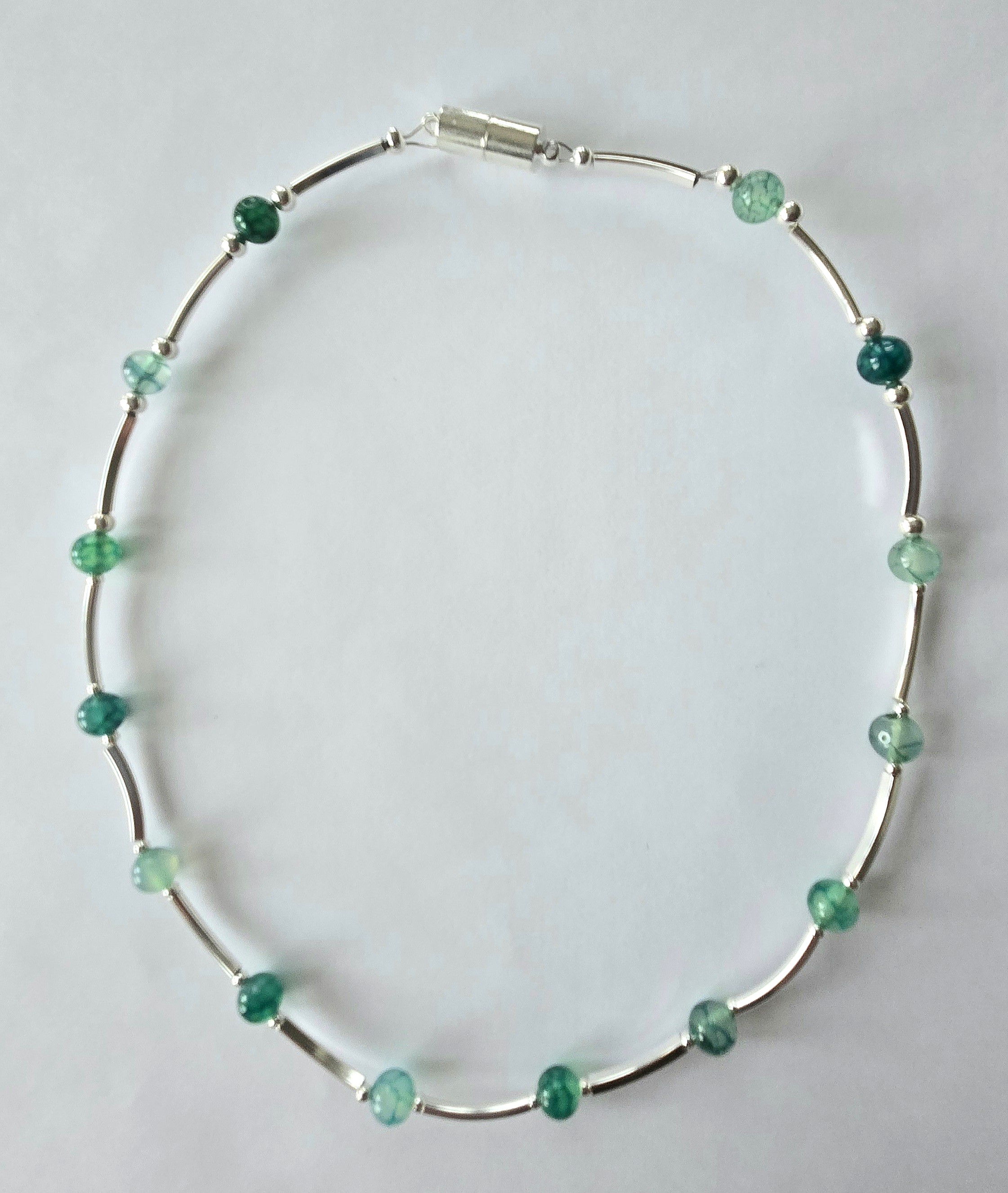 NASZYJNIK Z ZIELONYMI AGATAMI I SREBREM