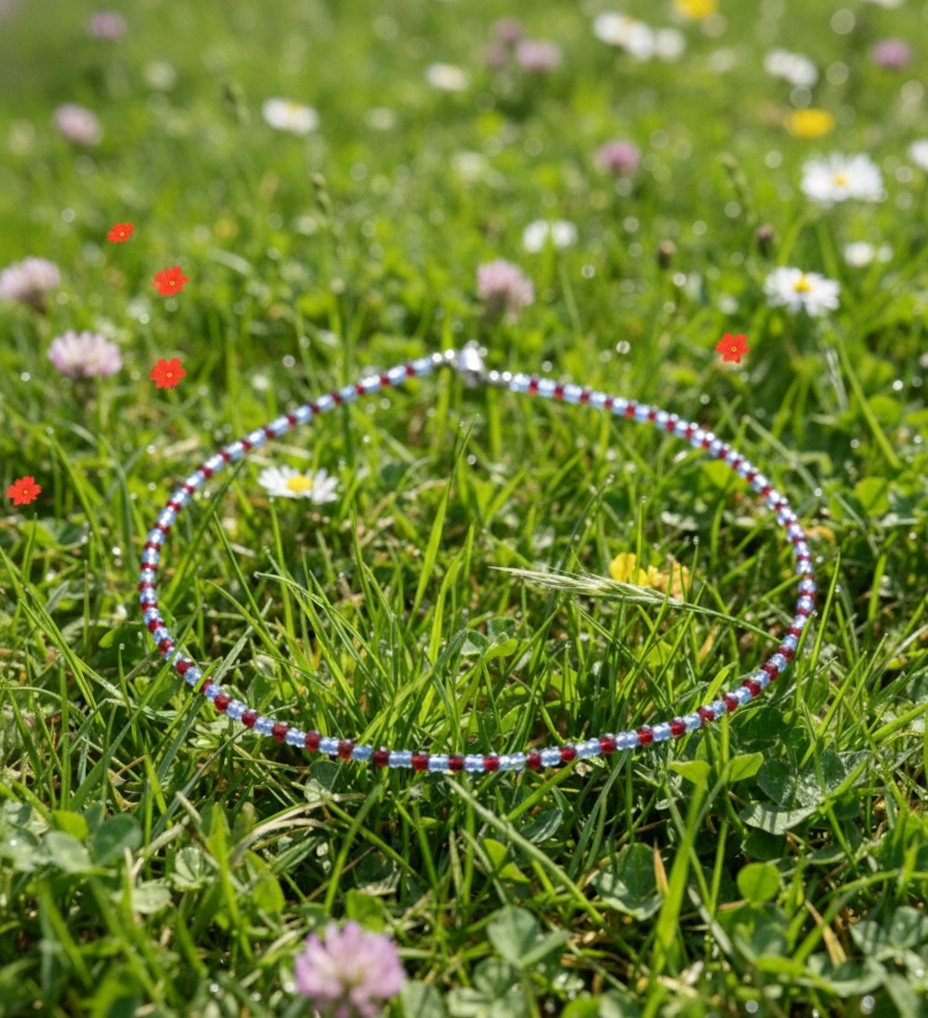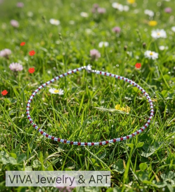 Naszyjnik ,,Polne Czerwienie" z kamieni szlachetnych - chalcedonu to idealny dodatek do każdej stylizacji. Wykonany z chalcedonu czerwonego, ozdobiony niebieskimi szklanymi przekładkami, prezentuje się niezwykle elegancko i oryginalnie. Klasyczne połączenie kolorów sprawia, że naszyjnik pasuje zarówno do wieczorowych kreacji, jak i codziennych outfitów. Jego unikatowy design przyciąga spojrzenia i nadaje charakteru każdej kobiecej stylizacji.
